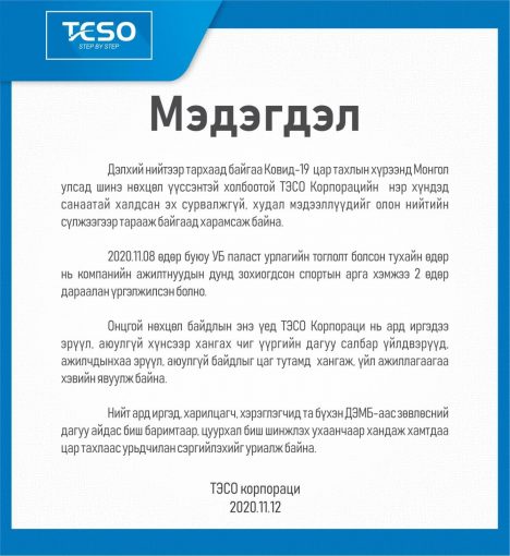 нийгэм Тусгаарлалтаас гарсан жолоочоос халдвар илэрч, Улаанбаатарт 3 хоног хөл хорио тогтоолоо 2020.11.11 558