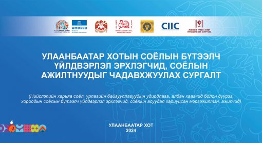энтертаймент УЛААНБААТАР ХОТЫН СОЁЛЫН БҮТЭЭЛЧ ҮЙЛДВЭРЛЭЛ ЭРХЛЭГЧИД, СОЁЛЫН АЖИЛТНУУДЫГ ЧАДАВХЖУУЛАХ СУРГАЛТ ЗОХИОН БАЙГУУЛАГДЛАА 2024.09.21 297