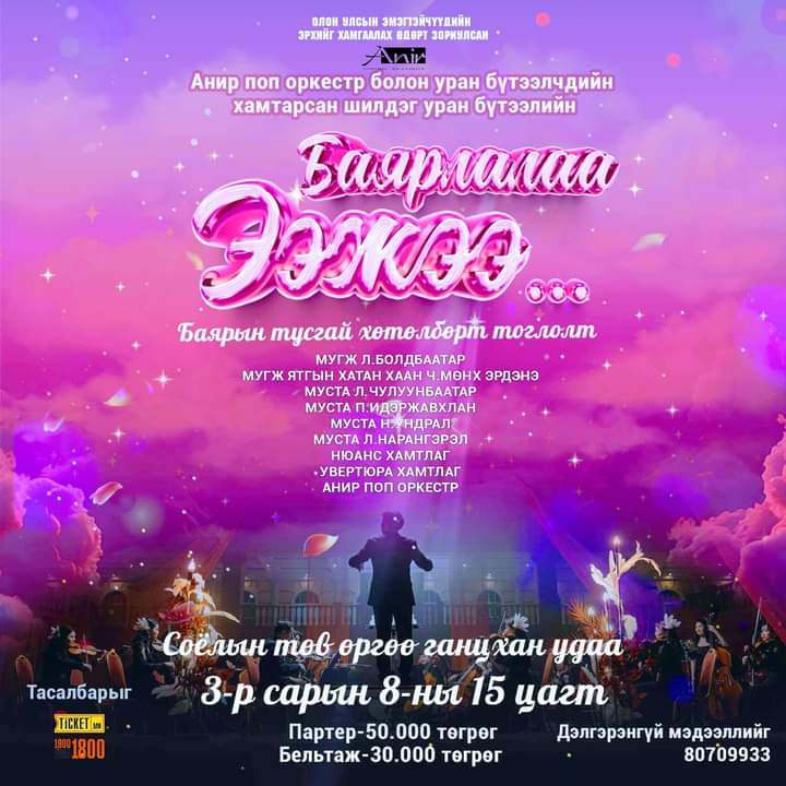 “Баярлалаа Ээжээ” баярын тусгай хөтөлбөрт тоглолтын тасалбар худалдаанд гарчээ