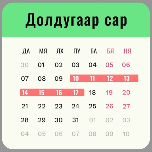 ЭНЭ ЖИЛИЙН УЛСЫН ИХ БАЯР НААДМААР 7 ДУГААР САРЫН 10-17-НЫ ӨДРҮҮДЭД АМАРНА