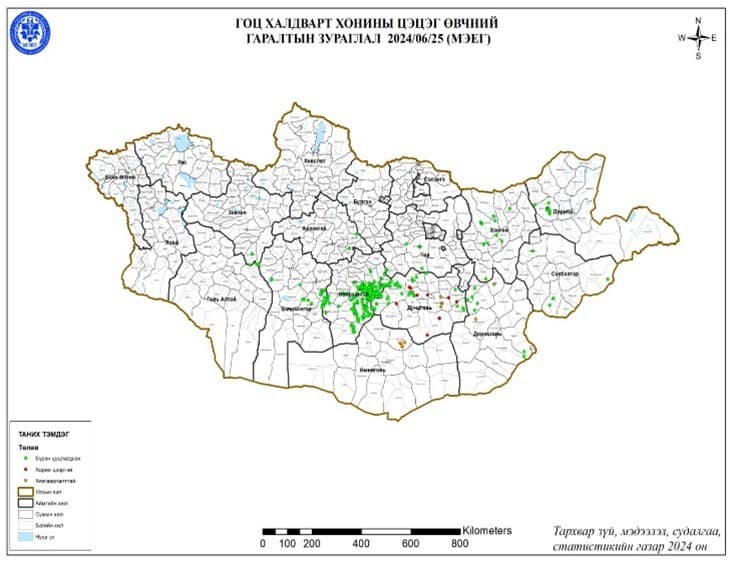 Улсын хэмжээнд өнөөдрийн байдлаар 12 аймгийн 71 сумын 91 голомтод 401 өрхийн нийт 11951 толгой…