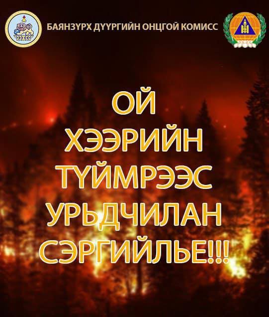 Баянзүрх дүүргийн хэмжээнд 2020 оны 04 дүгээр сар гарснаас хойш хоёр удаа нийт 11.5 га талбайд ой хээрийн түймэр гарсан. Тодруулбал, дүүргийн 11 дүгээр хороо Сүүл даваад 6,2 га талбайг хамарсан ой хээрийн түймэр гарсан бол 20 дугаар хороо Шар хоолойн Булгийн эх, Шарилын энгэрт 5 га талбайг хамарсан ой хээрийн түймэр гарч дүүргийн Онцгой байдлын хэлтэс, мэргэжлийн ангиуд түргэн шуурхай ажиллаж унтраагаад байна.