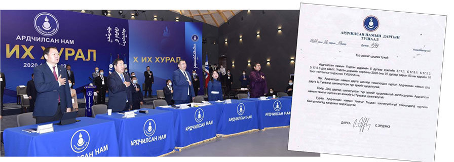 Харин намын даргын үүргийг түр орлон гүйцэтгэгч Ц.Туваан бүх зүйл дүрмийн дагуу явагдаж байгааг тайлбарласан юм. Тэрээр “УИХ-ын сонгуулиар манай нам УИХ-д олонхи болж чадаагүй. Тиймээс дүрмийнхээ дагуу намын удирдлага болох намын дарга, дэд дарга нар, ерөнхий нарийн бичгийн дарга нар бүрэн бүрэлдэхүүнээрээ огцордог. Ийм дүрмийн заалттай. Тэгэхдээ дараагийн намын даргыг сонгогдтол аль нэг дэд дарга нь даргын үүрэг гүйцэтгэнэ гэсэн заалт байгаа. Өөрөөр хэлбэл, аль нэг дэд дарга руу намын даргын эрх, үүрэг шилждэг. Энэ үйл явц болж, дараагийн дарга сонгогдох хүртэл миний бие намын даргын үүрэг гүйцэтгэж, тамгыг аваад үйл ажиллагаа явуулаад байж байна. Үүнийг дүрмийн бус гэж хэлэх нь өрөөсгөл” гэсэн тайлбарыг өгсөн юм.