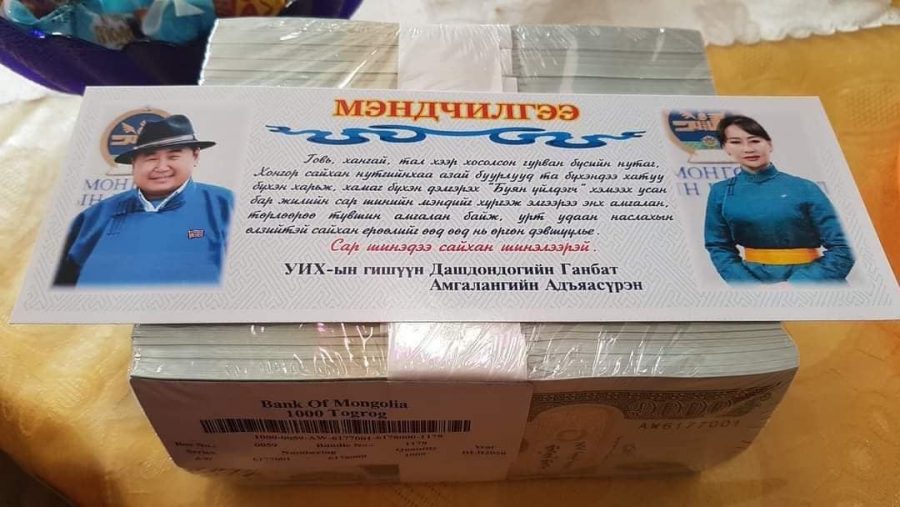 Тэд 500 төгрөг болон мянган төгрөгөөр багцалсан бэлэн мөнгө тараасан байна.