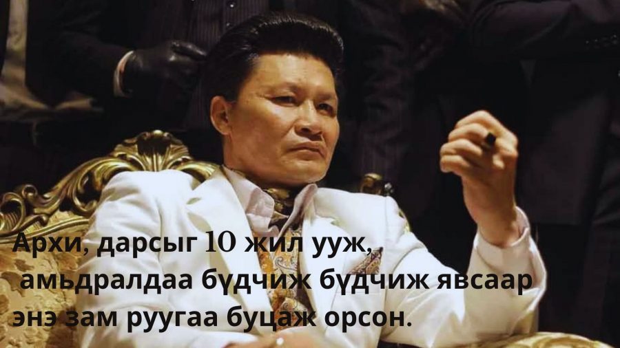 -Хүнд ер нь боловсрол л хамгийн их хэрэгтэй юм билээ. Чи боловсролтой, мэдлэгтэй байвал чамаас хүн айна. Түүнээс биш чи мянган машинтай, Зайсанд мянган байртай, мянган дарга таньдаг байлаа гээд нэмэргүй, аймхай хэвээрээ л үлдэнэ.