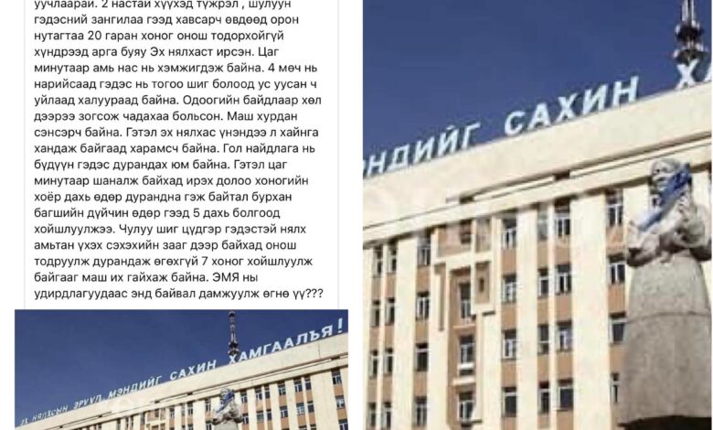 Чулуу шиг цүдгэр гэдэстэй нялх амьтан vxэх cэхэхийн зааг дээр байхад онош тодруулж дурандаж өгөхгүй. Долоо хоног хойшлуулж байгааг маш их гайхаж байна. ЭМЯ ны удирдлагуудаас энд байвал дамжуулж өгч тус болооч гуйж байна??? хэмээн тусламж гуйжээ. Яаралтай арга хэмжээ аваад нэг ч гэсэн бяцхан үрс эрүүл саруул болоосой хэмээн үүднээс оруулж байна.