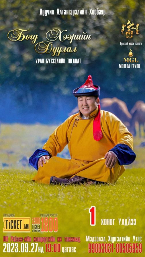 Соёлын тэргүүний ажилтан, Дуучин Алтангэрэлийн Хосбаярын “Гүйгүүл морь”, “Адуутай намар” ,”Бүжин бор” ,”Зоос бор”, “Богд дүнжингарав” зэрэг олон сайхан дуунуудыг фэнүүд нь шимтэн сонсдог билээ. Тэрбээр “Богд хээрийн дуулал” уран бүтээлийн тоглолтоо маргааш түмэн олондоо  UB PALACE -н концертын их танхимд толилуулах юм.