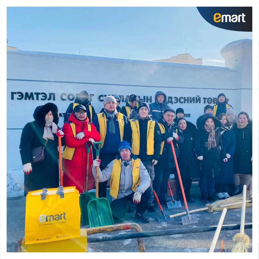 Шинэ оны анхны сайн үйлсийн аяныг олны хөл хөдөлгөөн ихтэй ‘‘Улсын Хоёрдугаар төв эмнэлэг’’, ‘‘Гэмтэл согог судлалын үндэсний төв’’, ‘‘Хавдар судлалын үндэсний төв’’ болон ‘‘Улсын Гуравдугаар төв эмнэлэг’’-үүдийн нийт 1800 м2 талбай бүхий явган хүний замын дагтаршсан цас мөсийг цэвэрлэж эхлүүлжээ.