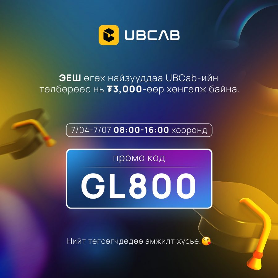 Унаагаа дуудахын өмнө төлбөрийн хэрэгсэл цэс дээр GL800 промо кодыг оруулж дуудах ёстойг та бүхэн мартаж болохгүй гэдгийг тус хамт олны зүгээс санууллаа. Энэхүү хөнгөлөлтийг долдугаар сарын 04-07-ны өдрүүдэд 08:00-16:00 цагийн хооронд эдлэх боломжтой.