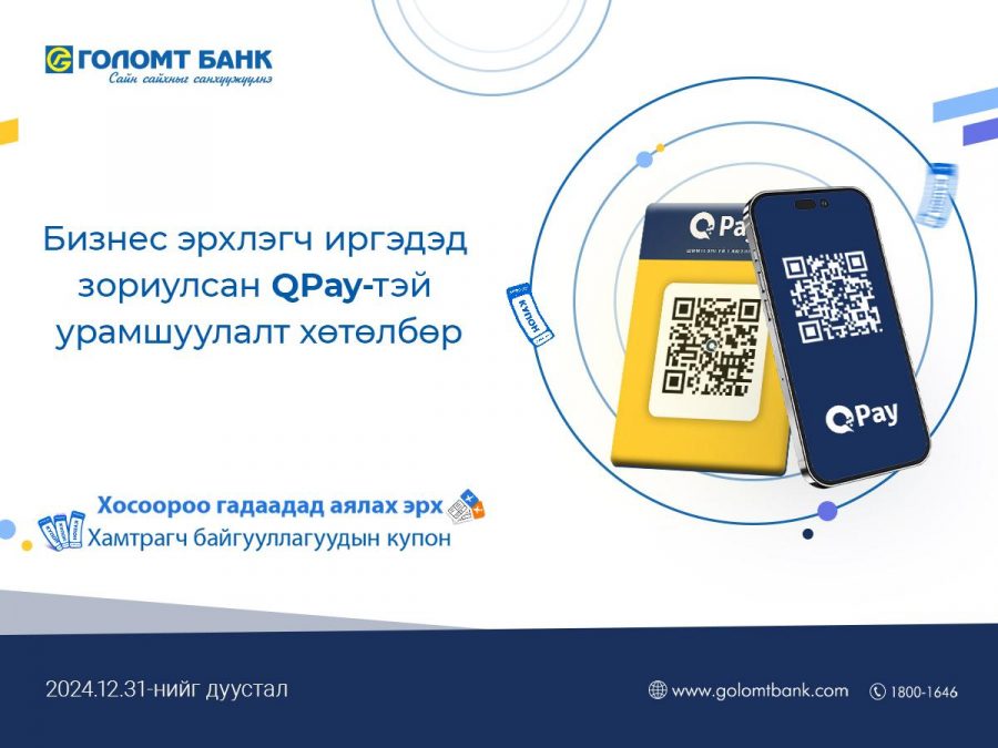 Голомт банк болон QPay цахим төлбөрийн үйлчилгээ хамтран бизнес эрхлэгч иргэдэд зориулсан оноотой хөтөлбөрийг хэрэгжүүлж байна.