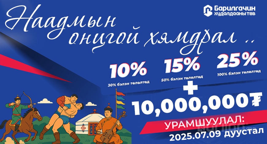 Бид Монгол Улсын Үндэсний Их Баяр Наадмыг тохиолдуулан Барилгачин худалдааны төвөөс НААДМЫН ХЯМДРАЛ УРАМШУУЛАЛ зарлаж байгаадаа таатай байна.